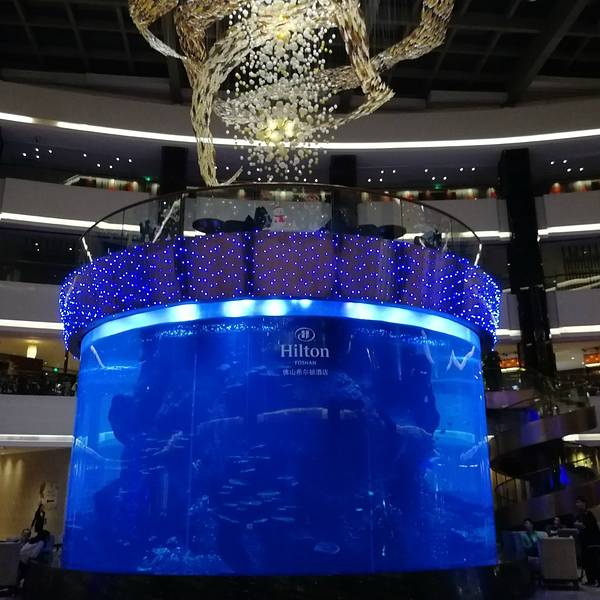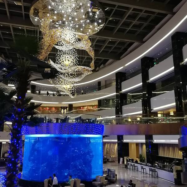 佛山希尔顿酒店位于禅城区岭南大道,门口有公交车站,也可以乘坐地铁到魁奇路站然而打车前往。它有两个自助餐厅,分别是“开”和“誉”。“誉”餐厅是日本料理,“开”是西餐厅。应该说,希尔顿是佛山禅城区最新...佛山希尔顿酒店位于禅城区岭南大道,门口有公交车站,也可以乘坐地铁到魁奇路站然而打车前往。它有两个自助餐厅,分别是“开”和“誉”。“誉”餐厅是日本料理,“开”是西餐厅。应该说,希尔顿是佛山禅城区最新的一家高级酒店,所以便去尝试了一下自助晚餐。环境不错,一进酒店大门,大堂巨大的水族箱很吸引人,尤其是晚上,颇为炫目,水族箱上就是开餐厅的一部分,也布置了桌椅,但是服务员一般不会引到那里入座。餐厅面积挺大的,座位也很多,部分座位明显看得出是准备给会议用餐的,因为很简陋……去到时恰逢主题是加勒比海盗之夜,不过感觉就是有一些装饰上的不同而已,菜品好像没啥关系。说是西餐厅,其实跟一般的自助晚餐一样是万国菜,有三文鱼刺身、寿司、扒类、中餐等等。一人一个大闸蟹和半只小小的龙虾,大闸蟹顶多有2两吧,限量的,只能一人一个,服务员送到桌子上,季节正当时,所以膏挺香的,但是就是分量太少了,而且不会给你准备吃蟹的工具,感觉对牙齿是一个挑战。免费饮料有啤酒、茶水、咖啡和听装可乐雪碧,这点有点失望,正价268元的自助晚餐就是这些饮料,感觉有点不值得。吐槽的还有水果,西瓜、番石榴、柚子、橙子、百香果……种类不多,而且都是很常见的水果。三文鱼刺身还行,寿司种类较少,味道一般。各种扒类、煎鱼等铁板类的也只能说味道尚可,几种中餐菜肴以川菜和粤菜为主,还有潮汕卤味,卤味除了干了一点,味道还是很好的。冰淇淋不知道是什么牌子的。所有菜品中,觉得比较好的是糕点,有几款做得很好,感觉这个自助晚餐就是吃点心来着。怎么说呢,如果是268元的价格,我觉得是很不划算的,菜品种类一般,整体一般,服务因为人少,所以也不是很到位。