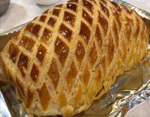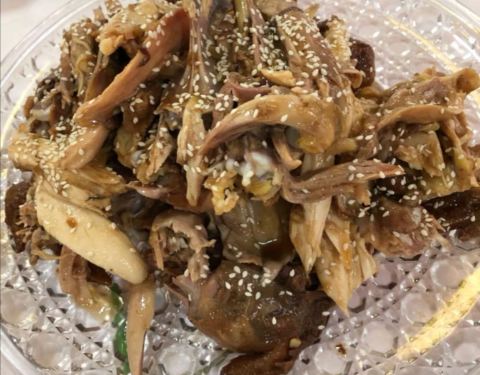 - 菠萝包手撕鸡,菠萝包非常好吃,鸡的味道调的很赞,上面撒了很多很多的芝麻,如果要是走地鸡就更加的不错了