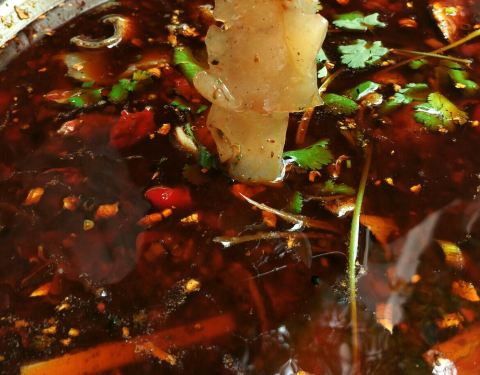 罗氏罗非鱼需先去后厨称鱼,一条罗非鱼的重量一般为一斤七八两,根据就餐人数点杀。吃完鱼还可以加煮土豆、荷心等。罗氏家的罗非鱼属冷锅鱼,厨师根据客人要求烹饪,口味的浓郁与清淡级别为辣、中辣、微辣,如果吃不了麻,点鱼时须特别说明,罗氏家的花椒很炫酷,微辣汤锅也很麻。罗非鱼片十分嫩滑爽口,基本上没有刺,也没有鱼腥味,辣味麻味都很劲爆;鱼排、鱼腹是大刺,很好清理。店铺的位置在背街马路边,经骨灰级吃货指点才觅得芳踪。环境还算安静,店面虽然小,但院坝较宽,坐在大树下就餐很惬意,风和日丽,天高云淡,偶有风吹叶落坠入饭盆,仿佛身处世外桃园。服务员很热情,饭点儿需等候餐位与美食。