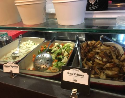 小小的一家法式烤鸡店,在香港开了几家的连锁。最平价的套餐是1/4只烤鸡加自选配菜。至于这1/4只烤鸡具体是鸡的哪个部位,那就要看你的运气了,如果喜欢吃鸡大腿的话,却不巧给你拿了一块鸡胸脯,那也只能摸摸鼻子吃下去吧。自选配菜有烤薯角和杂菜,还有每日例汤,这就是78蚊的lunch set。