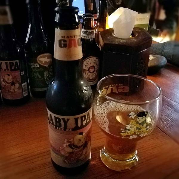 在去哪儿上早就知道大卫,据说在舟山开了间酒吧,一直没时间过来,跨年那天作为办公室留守儿童,无聊一个人过来坐坐。中大街的小巷子里,不过酒香不怕巷子深。小哥感觉挺青涩的,没有在成天跋山涉水流露一点饱经风霜。最喜欢的mojito,没有失望。位置还是有点点绕,因为沿着中大街主街道走没有看到。可以导航,定位还是挺准的。舟山打车也不贵,然后公交车的话快速公交1号线。一家安静的小酒吧,虽然小,但是很温馨,那天吧台都坐满了人。酒单很有特色,是块小木板,除了单子上的,也可以找老板推荐,special drink,说不定会有意外惊喜。他们家啤酒很多,可以选一款或几款喜欢的,口感都不错,不过觉得夏天来会更有意思冰爽。