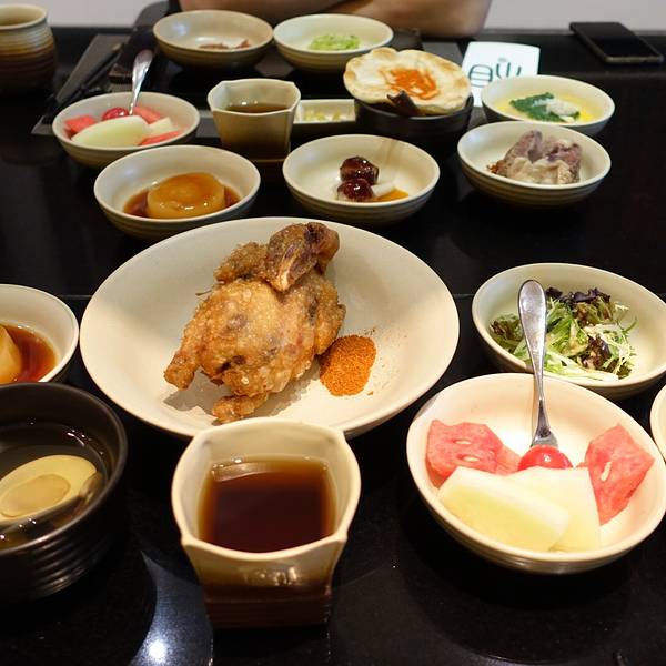 在路边无意见到这个餐厅的广告,觉得很有意思。随性的我,当机立断,决定去了。一进去餐厅,就有一个超有帝王相的大哥迎接我们……1.9米……看着就觉得有威严……这个用餐的体验真的很值,一开始有人来做开餐仪式,中间有人讲解菜式……菜说不上多好吃,但是这个体验,值这个价了!来福:萝卜葫芦鸡玉夹面:包子红豆糕,好吃
