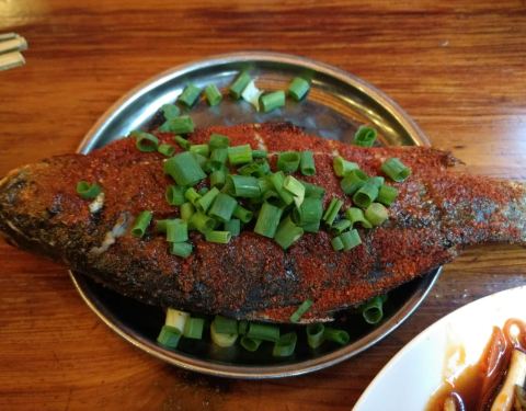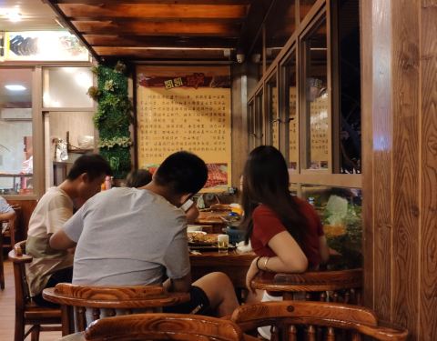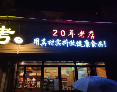 晚上12点想出来觅食,搜到附近这家烧烤似乎评价不错就走路过去。 [环境]店铺还是比较大,装修普通。 [服务]服务还行,就是烧烤必须五串起点 看网上说是多年老店,由于不饿就点了五串五花肉,五串排骨,五串韭菜。五花肉一股说不出来的味道,不香,还带肉生味。排骨也是用的肉不知道是什么肉,味道怪怪的。韭菜也是硬邦邦的,让他们再烤一下拿上来还是硬硬的。就这么几串烧烤两个人都没有吃完。 唯一可以吃的就是醪糟粉子,分量比较小。 很久没有吃过这么难吃的烧烤,有点出乎意料。建议喜欢吃烧烤的还是换一家,不要来这家踩雷。