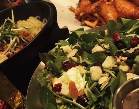 这家炸鸡店的味道还真不错,而且生意真的非常火爆,站子的皮非常香,他们家还有一些白菜泡菜搭配这样比较清爽哦,还有鸡肉色拉炸鸡肉的。