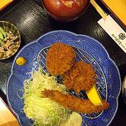 很意外居然有午间套餐,5.60块钱的套餐一份炸猪排,一份汤,一碗米饭,一碟小菜,还送饮料,有果汁还有咖啡!很超值啊! 一份厚切里肌猪排套餐68块,自己研磨芝麻,香气扑鼻,调味料分甜咸两种,我选了甜口的,炸好的猪排切成方便夹取的小块,厚厚的猪排差不多有将近3厘米的厚度了,难得的是猪肉一点也不老不柴,切面可以清楚的看到肉汁!咬一口,外皮酥脆不油腻,猪肉嫩香可口,里脊外边的一点点肥肉此时锦上添花般的增加了整块猪排的口感! 其实吃完整块猪排再喝了汤基本就饱了,米饭只吃了几口^_^