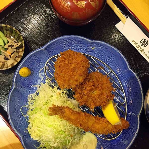 他家中午过来吃价格会划算一些,晚餐时段有点贵。 他家炸猪排一类的特别好吃。猪排炸的金黄的,外酥里嫩,猪肉本身带一点点肥肉,所以特别香,一点也不柴。还搭配了一些酱料,芝麻是现磨的,很香。大头菜丝切的好细啊,水灵灵的,新鲜,也特别好吃。 点过菜,感觉有点普通吧。