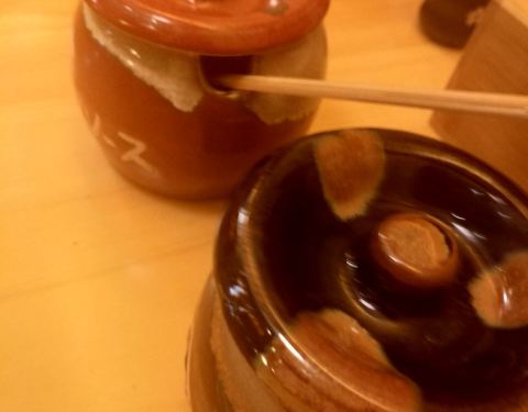 一份厚切里肌猪排套餐68块,自己研磨芝麻,香气扑鼻,调味料分甜咸两种,我选了甜口的,炸好的猪排切成方便夹取的小块,厚厚的猪排差不多有将近3厘米的厚度了,难得的是猪肉一点也不老不柴,切面可以清楚的看到肉汁!咬一口,外皮酥脆不油腻,猪肉嫩香可口,里脊外边的一点点肥肉此时锦上添花般的增加了整块猪排的口感!