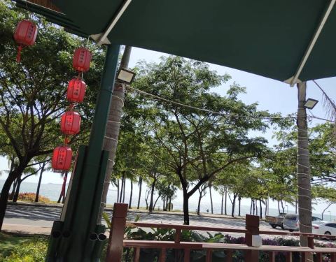 疫情过后开业了,露天的环境,离海30米,可以吃着饭看着三亚湾。