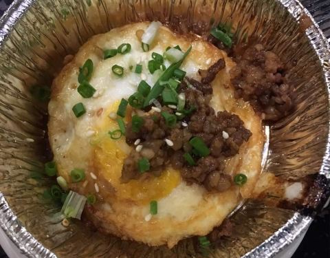 在一楼美食城的最里面,人超级超级多,周天周五等座需要160分钟,特别惊人。在等到120分钟的时候听说外带不用排位,20分钟就可以做好,果断外带,然后在小吃城的桌子上吃。不知道是等太久还是外带没有摆盘,丝娃...