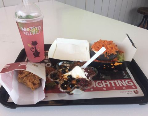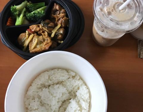菜饭分离的设计很不错,买一送一的榛果拿铁要是少点冰块就好了,影响了口感。总体来说还是不错的。