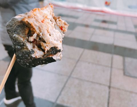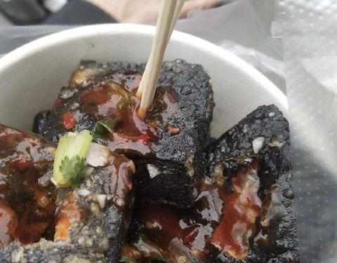 这家臭豆腐在南京很有名,来狮子桥的时候发现有很多家名字差不多的臭豆腐店,看了点评才知道最正宗的在最里面。果然到了门口,已经有很多人在排队了,还是下雨天。由于是下雨天,等了一会,期间去后面买了一杯多克多。10元一份,大概有七八块,每一块都戳开灌了汁,所以咬的时候要注意,会爆汁,而且汁会顺着签子流到手上。味道还是不错的,外面脆脆的,里面很嫩,咸香十足,一点不臭,难怪这么多人排队。