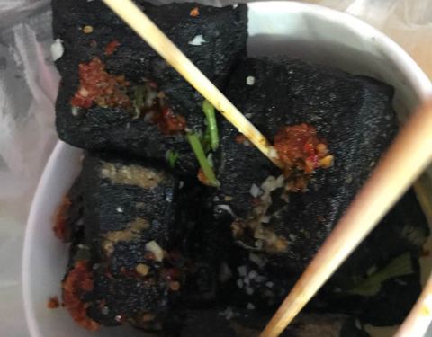 在南京的狮子楼美食街上,街头和街尾各有一家,但是2家排队的人都多,几经纠结还是来排排看吧,幸好还算快的,点评给力的团购还有新客户立减,结果只要1块8买小份,5块臭豆腐呢,不得不感叹下南京的物价其实还是可以的。招牌说爆汁,的确是有,咬开的瞬间,汁水掺着甜酱一起爆出的,外面炸的极脆,还有放了蒜泥貌似,和在上海吃的臭豆腐是2类口感,不过我还是比较偏爱上海的传统臭豆腐的味道~
