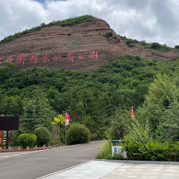 ...火石寨地质博物馆,位于火石寨景区北门,依山而建,火红色的外观颜色与景区自然景观巧妙的结合在一起