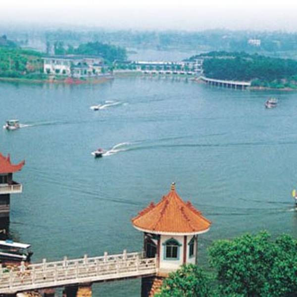 川南海潮湖旅游区,它离泸州城约20公里,沿泸州――自贡公路而行,沿途风光绮丽.海潮湖总面积约18平方公里,其中有泸州最大的水力发电站,百年桂元林,米溪沟支流风景区等。川南海潮湖旅游区,石刻华表大门,古今名家题辞,盈入眼帘;山庄旅舍、宾馆楼群,则环绕于湖岸;湖两岸繁花异木、水草青青、绿树丛丛、鸟语阵阵;沿湖的水上长廊,盘旋蜿蜒;崖边栈道,曲折通幽;洞中探险,引人入胜;玲珑拱桥,长虹卧波,各式各样的景点,使人如在梦中,如醉如幻,流连忘返。