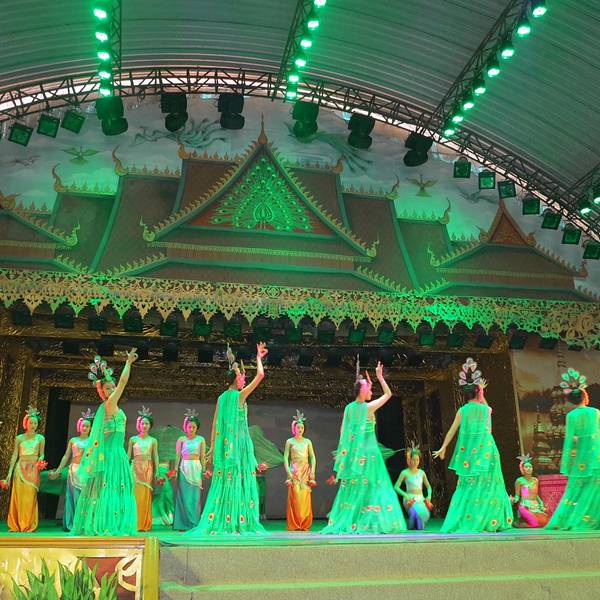 晚会主要有各民族以及东南亚地区的舞蹈表演,说实话表演的一般 基本没什么舞台效果(舞台效果还不如丽江千古情的五分之一)主要就是了解一下各民族的文化,还会有一首歌的表演,然后开始主持人的脱口秀 会邀请四位男士上台参与 这一段还是蛮有趣的 主持人很幽默 观众们也都笑的很开心,表演结束后出来 出口左右两边都有领水灯的地方 要投钱领取 基本投一块就可以 多少自愿 然后绕到后面(舞台后面的江 舞台在江的前面 表演的时候你们会看到)去那里放水灯 人很多 注意拥挤⚠️ 放完水灯从另一面出来 在入口处的位置 会有篝火🔥舞蹈 大家一起跳的 围成圈 工作人员会教怎么跳 很简单 晚上的出口在入口处旁边👈🏽 总的来说湄公河篝火晚会还是可以的 虽然我觉得不值票价 但是这种舞台表演还是可以快速的了解当地民族文化的👈🏽 展开