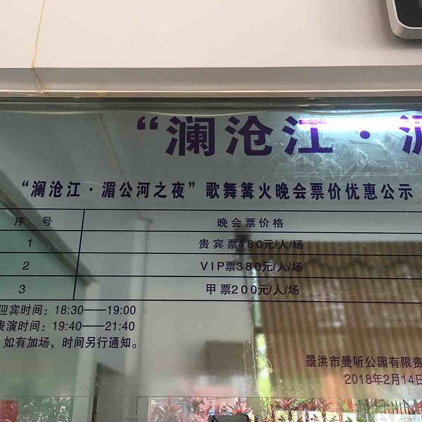 这里以前是傣王的御花园 挺大的 在这里逛了一天,在市区里面 滴滴打车10元左右就可以到,公园门票🎫54元 学生证半价(图九)价格表👈🏽 这里也卖湄公河篝火晚会的门票🎫 最低价格的晚会门票是200元 我建议你们去飞猪上面搜 150元就可以买到一样的票(越早订票位置越靠前)网上订票 会有工作人员给你送票到公园门口,湄公河篝火晚会表演在曼听公园里面右侧,下午5点半会清场 下午6点半开始湄公河篝火晚会检票,所以白天的门票只能玩到下午5点半。(图三)