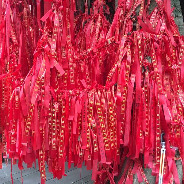 里面有棵许愿树 可以免费系红色许愿带 自愿投钱 重点是里面提供的笔没有多少墨水 不方便写字 如果有意向去许愿🎋建议带支笔