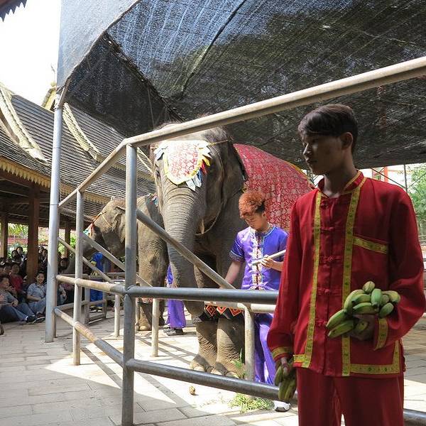 六点半开始敲锣提醒游客入场 会有工作人员跳舞迎接 这时候大象🐘也牵出来了,进场之后右走 先去餐厅吃饭(自助餐:鸡腿 烤鸡 烤鱼 柠檬水 ……)味道一般 但是可以吃饱 这个用餐是包含在门票里的 ,普通甲等门票在二楼 vip在一楼 建议大家先占个位置 再去取餐 人很多。吃完饭出来稍等一下7点多开始表演入场(表演厅就在餐厅对面)