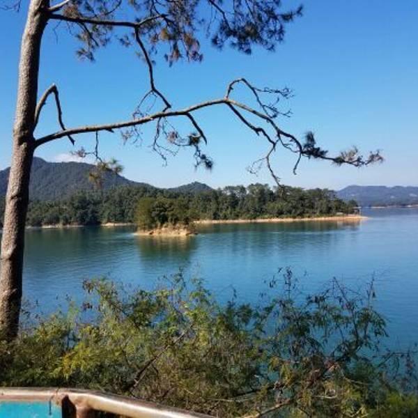 湖水很蓝,绿树成荫,空气清新,是休闲旅游不错的地方……