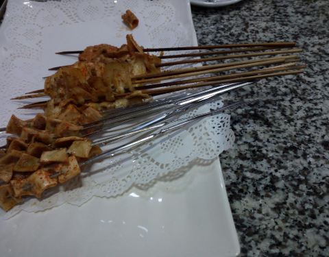 门面看着挺好,里面环境一般,服务人员不热情,都在聊天,而且声音特别大!坐了半天才有人招呼!板筋烤的特别硬,餐盘虽然包装了,但是不干净!味道都偏咸,鸡翅烤的还可以,其他都一般!而且价格偏贵!
