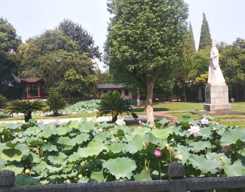 北宋名相,唐宋八大家之一的临川先生生前居所,只能说是仿制品,所有的正品都不可能支撑过那漫长的十年。楼前立着他的全身塑像,目光依旧炯炯有神,却又透露着愤恨和不甘。我能理解他的心,他的梦,以及梦碎后的心死如灰。堂前荷花如雪,卷起的又是什么。