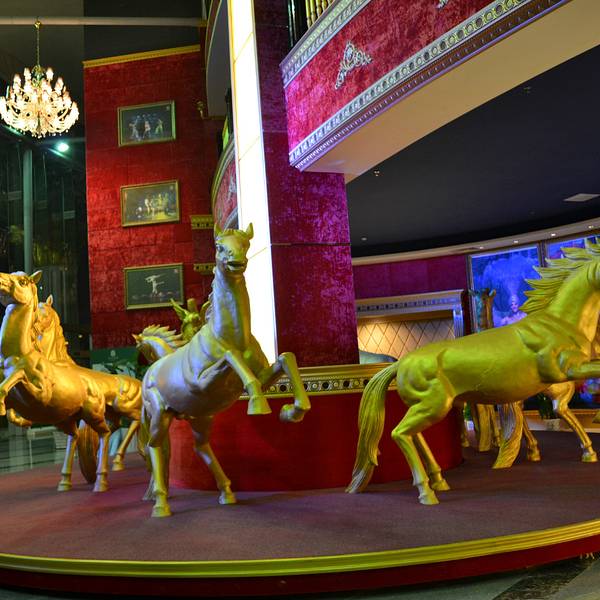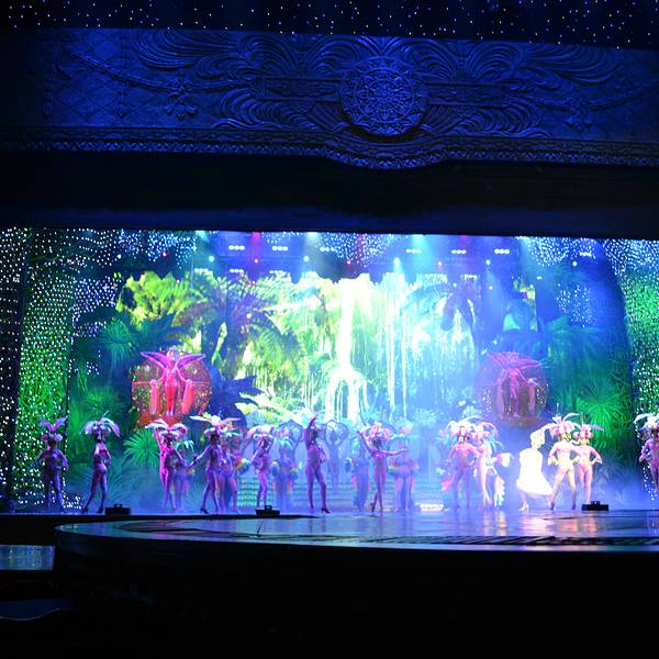 实用 总体感觉,现场气氛很好,很热闹,音响效果很震撼,只可惜我不会欣赏这样的舞台剧,只看到了很多美女嘿嘿三亚美丽之冠文化会展中心,曾经是世界小姐选美的地方,现在是会展中心,每天晚上有西方国家的舞台剧表演,内容很丰富,只是穿着很开放,表演的艺术内涵和美感,我这土鳖真看不懂,印象深刻的是外国美女穿的很少...三亚美丽之冠文化会展中心,曾经是世界小姐选美的地方,现在是会展中心,每天晚上有西方国家的舞台剧表演,内容很丰富,只是穿着很开放,表演的艺术内涵和美感,我这土鳖真看不懂,印象深刻的是外国美女穿的很少,感觉很诱人嘿嘿!美丽之冠会展中心外观,设计外形类似一个皇冠的样子。大门两侧有两排这样的金黄等高模特雕像,好像是奥斯卡电影节的感觉。美丽之冠正大门入口。进门以后,有一圈金黄色立马雕塑,每匹马有不一样的神态。展厅里的一个大花瓶,展厅里还有很多世界小姐的照片。天使的雕塑。会展中心里面一共有三层,一层是大厅,二、三层是一个一个的包厢。漂亮的外国美女。空中灯光。现场演唱有吉他和萨克斯伴奏。唱的挺好的。服务员。顶上的LED灯光,灿烂炫目。以森林为主题的舞台剧表演。每个人扮演一种森林里可爱的精灵,场面很震撼。拍手舞表演。另一个舞台剧,好像以孔雀为主题。表演很有动感。舞台后面一个孔雀开屏的背景,很热闹震撼,美女都是穿三点式的嘿嘿。