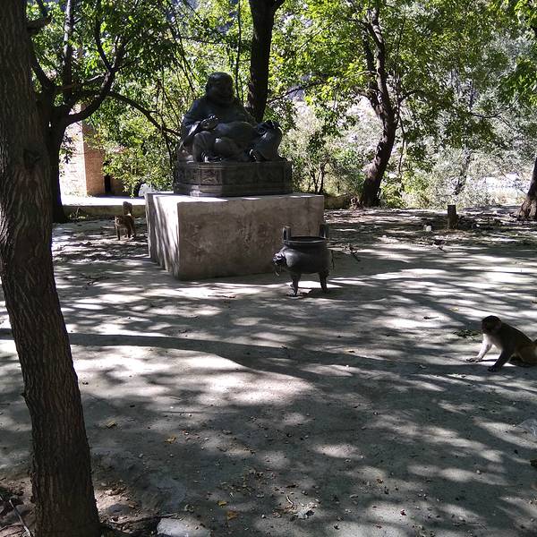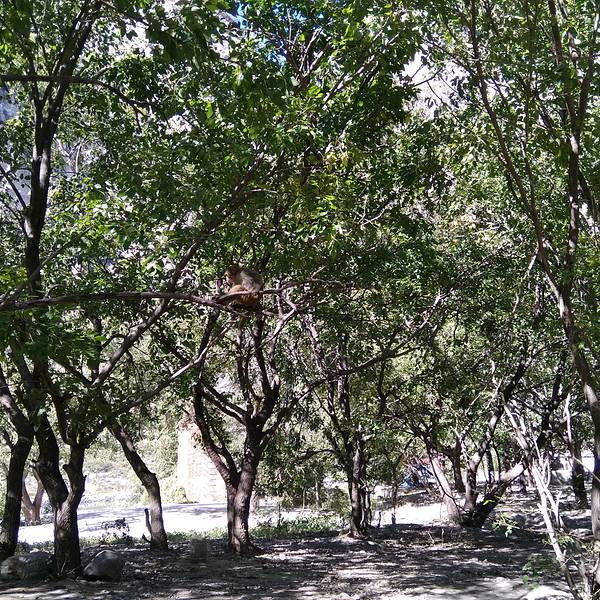 金骆驼 ...投喂时最好是放地下,不要直接用手让大圣来抓食,避免被大圣抓伤,哥们,游玩要尽兴,安全也很重要哈花果山风景区位于十渡风景区的七渡,我们是在国庆假期自驾去的。花果山景区外门口边有一个小型的免费停车场,我们很方便的就停好了车,相对于其他景区的人满为患,这里非常宁静,人很少。我们用的是京津冀旅游一...花果山风景区位于十渡风景区的七渡,我们是在国庆假期自驾去的。花果山景区外门口边有一个小型的免费停车场,我们很方便的就停好了车,相对于其他景区的人满为患,这里非常宁静,人很少。我们用的是京津冀旅游一卡通,很顺利的刷卡入园。在十渡的所有景区中,花果山景区面积是比较小的,不过它也很有特色,这里散养着100来只猴子,是名副其实的花果山。进入景区,伴随着电视连续剧《西游记〉的主题曲,穿过水帘洞,跨过一个小吊桥,我们来到了孙大圣的聚集地。一条大道向景区深处延伸,树木葱郁,遮天蔽日,时不时的可见猴子在林间穿梭嬉戏,无忧无虑,好一派世外桃源景象,不禁心神向往。远山含黛,近处一湾碧水,大圣们在山水间逍遥,好不自在。人与动物零距离,画面安详和谐,虽然大圣们比较多且是散养,但景区的卫生尚可,没有动物园的那种异味。大胆,竟敢侵入了我的地盘,大圣我在此,速速离开。大圣们在斑驳的林地间悠闲地踱步,三五游人与大圣和睦共处,还有带小孩的游客给猴子喂食,感觉投喂时最好是放地下,不要直接用手让大圣来抓食,避免被大圣抓伤,哥们,游玩要尽兴,安全也很重要哈。相对于国庆假期,游人成堆的景区,这里是比较清静的,很适合带小孩来游玩。景区们外就有农家院,就餐很方便。