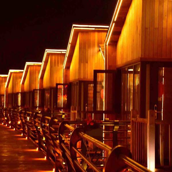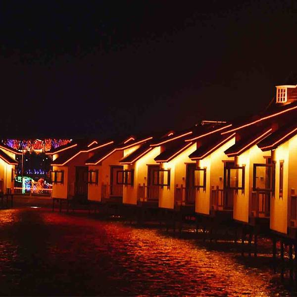 这里有温馨的小木屋,它是人类巧手与自然的完美结合,成为现代旅游者的一大休闲乐园这里有温馨的小木屋,它是人类巧手与自然的完美结合,成为现代旅游者的一大休闲乐园。夜晚来临,各种彩灯交相辉映,把这个美妙之境打扮得格外醒目。