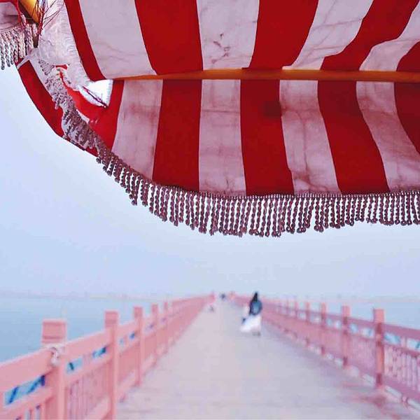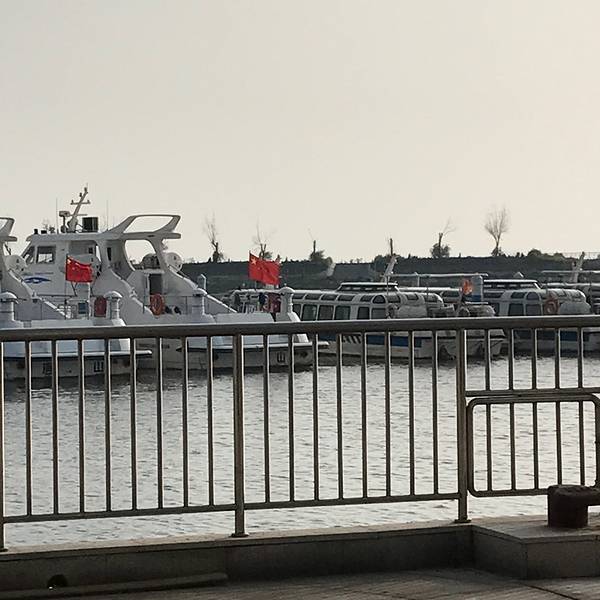 到达月坨岛码头,一尊巨大神像,像游人们挥手致敬。 展开