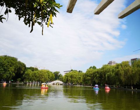 公园基本上绿化都是围绕中心湖,也有很多人在这里划船的,早几年这个公园还是要收费的,现在是完全免费进入,还真的是挺不错的,而且不行,在公园里面也是相当的舒适,不会特别热。