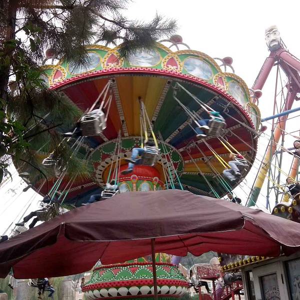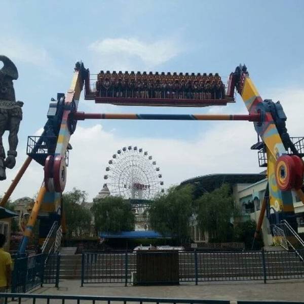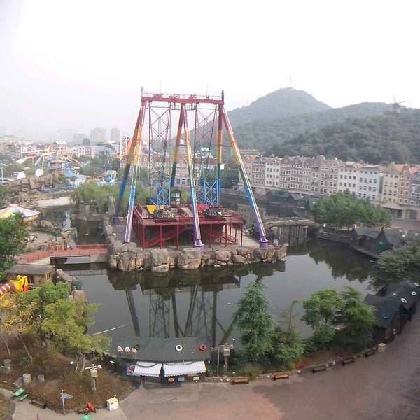 6、继续向前是海盗船、丛林秋千、水上三轮车、时髦飞人、高空飞翔,排队时间都在20分钟以内。这个时候基本已经玩掉一般项目啦。