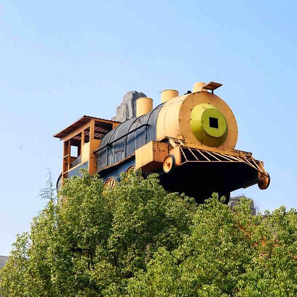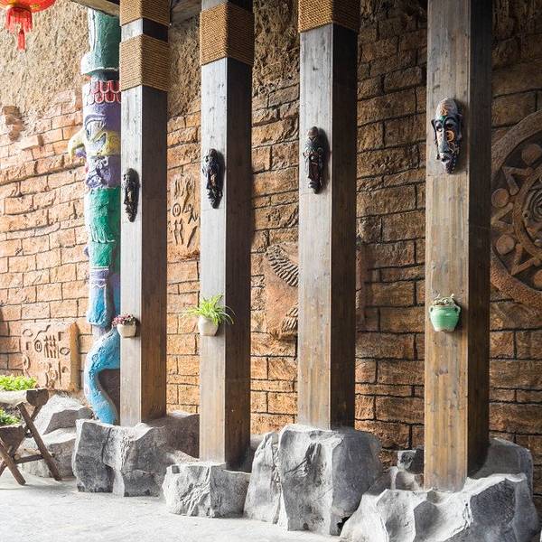 2、穿过玛雅集市,可以逛一逛这里的文艺风店铺和小吃店,不过建议往前走走有个怀旧风情的火车头餐厅,车厢内还原火车场景,拍拍照也是好的