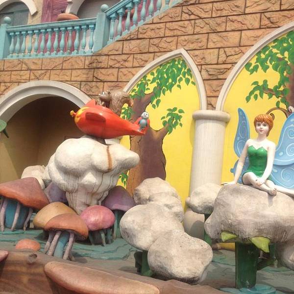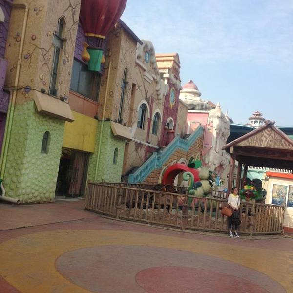 4、在儿童设施旁边有一联排彩色小楼和一些特色布景,可以拍拍照。