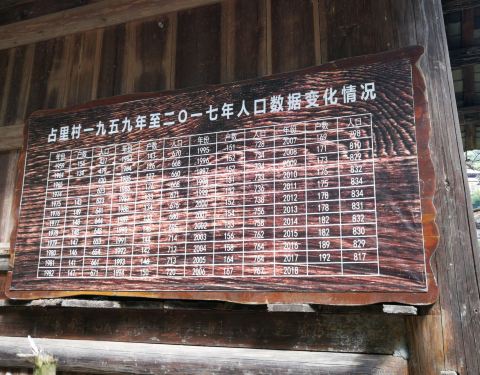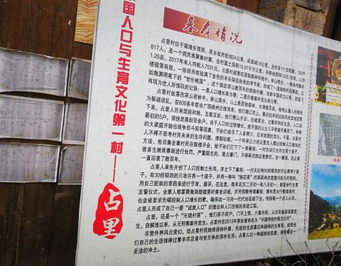 有特色是在鼓楼周边住宅,挂有宣传与控制人口有关的"占里古歌"牌子,展现了古寨流传千年的计划生育文化