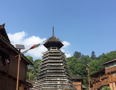 距离从江高铁约50公里,自驾游,景区不用门票,但可能交通不太方便,因为要驾车走一大段盘山公路,加上没有表演,游人自由在寨子里逛逛,看看鼓楼,体验下侗寨的原生生态环境。有特色是在鼓楼周边住宅,挂有宣传与控制人口有关的"占里古歌"牌子,展现了古寨流传千年的计划生育文化。