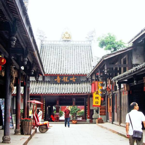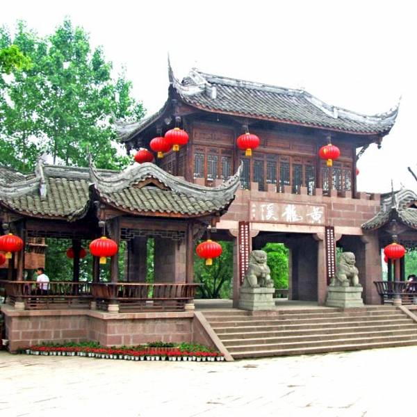 黄龙溪古镇位于双流县西南,距离成都市区约40公里,至今已有1700多年历史。镇上有明清时代的青石板古街,与古牌坊、古寺庙、古建筑民居等浑然一体。镇上传统民俗“烧火龙”活动,场面恢宏,被称为“中国火龙之乡”。 古镇位于两条河流的交汇处,有“水乡”的风味。一条溪水穿城而过,两岸是青石铺就的路面。路两边多为明清建筑,傍水而筑,木柱青瓦的楼阁房舍,镂刻精美的栏杆,宁静古朴。如今古镇是众多影视剧的取景地,电影《芙蓉镇》、电视剧《海灯法师》等近多部影视片在这里取过景。 正街上有三座古寺,分别是镇江寺、潮音寺和古龙寺。古龙寺内有上千年的黄桷树、清代的戏台。此外还有一个奇异的“三县衙门”,因历史上的黄龙溪镇地处三县的交界处,号称“一脚踏三县”,所以三县在这里设立了这个机构。 黄龙溪古镇的小吃也是鼎鼎有名,一根面、焦皮肘子、珍珠豆花、红烧黄辣丁等都值得品尝,在古镇内的大部分餐馆都能吃到。 烧火龙 黄龙溪民俗风情浓郁,以每年正月初二至十五的“烧火龙”为好。“火龙”栩栩如生,而家家户户则准备好烟花爆竹,待龙灯临门时,烟花齐射向龙身,表演结束后,众人将龙身烧毁,残灰撒入江河,以祈求当年风调雨顺。 游玩黄龙溪古镇,可以成都当日往返,也可以在镇上住宿一晚。古镇入口处的新镇有很多住宿点;古镇中心有家“黄龙溪大院坝旅店”,是一座川西大院,也提供住宿。