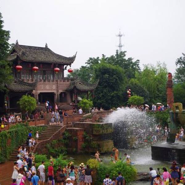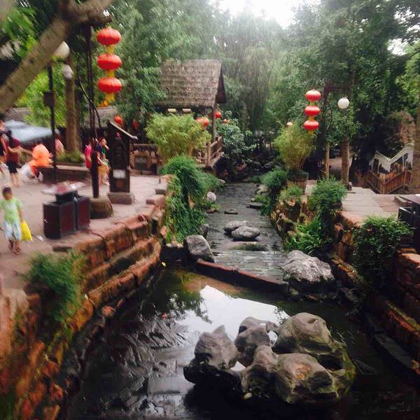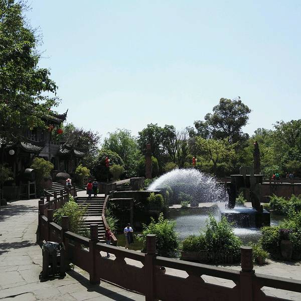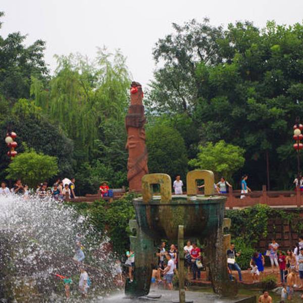 继续往前走会发现一个特别大的鼎,很多小孩子都在下面玩水黄龙溪古镇是距离成都最近的一个古镇,从市区新南门车站可以乘坐班车去玩,车费不到20元你一个人。不堵车不到一个小时就可以到达古镇。
