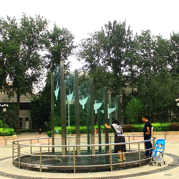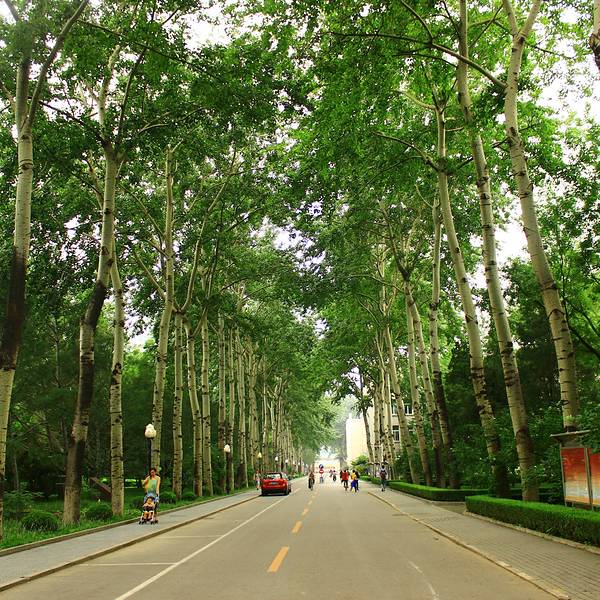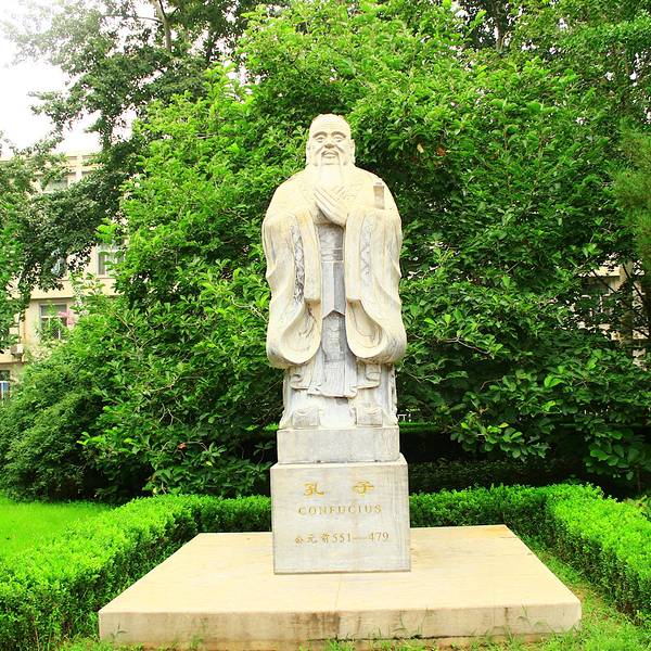 中心花园还有至圣先师孔子像,庄严肃穆,凝视每个走过的北理人。校园绿化很好,校内道路两旁有很多参天大树