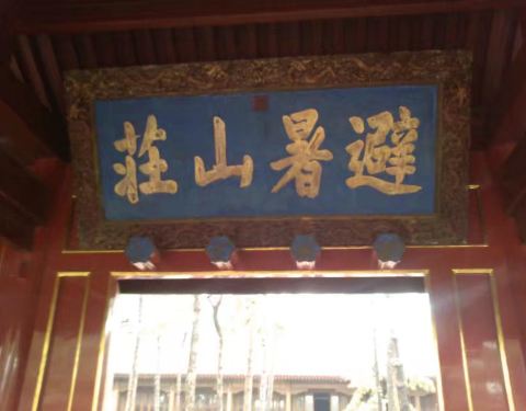康熙和乾隆共建避暑山庄36景。“避暑山庄”四个字是康熙写的,“丽正门”三个字是乾隆写的,你能体会出他们笔体的不同吗?避暑山庄正殿大门的上方悬有一块匾,上面写着“避暑山庄”四个镏金大字,字体浑厚,虽历经几百年仍熠熠生辉,是难得的精品。然而,“避暑山庄”的“避”字右边应是“辛”字,康熙把“辛”字多写了一横。康熙有意多写了一笔,“此是避暑之避,不是避难之避”。皇上是忌讳“避”字有“逃避”的意思,不吉利,所以大笔一挥加上一横,这样就没有“逃避”之意了。