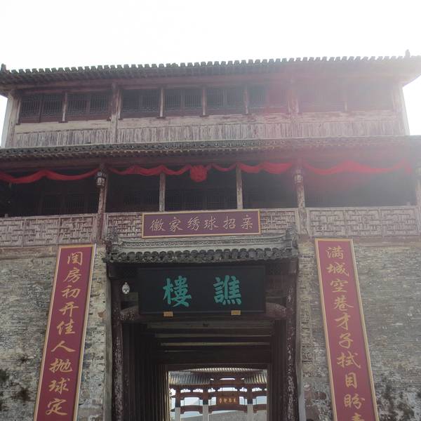 南谯楼,始建于隋末,府衙正门,以倒梯形排柱支撑楼宅,世所罕见一座楼的内外两面挂着不同的牌匾,进城的那面挂着“徽州府”,城内的这面则挂着“谯楼”。