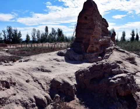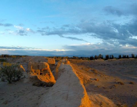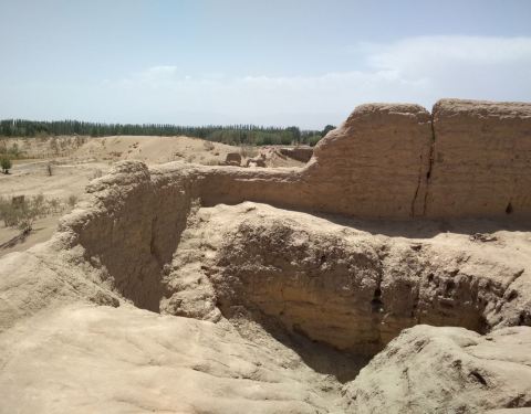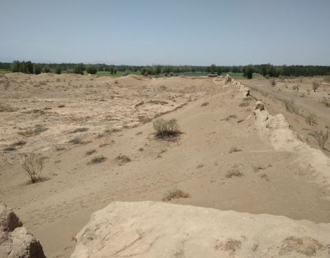 黑水国古城遗址分南北两城,相片所在是南城主要为明代时期修筑,古城内到处都是汉砖和各个朝代的陶器碎片。北城为汉至魏晋南北朝时期修筑,因紧邻汉代墓葬群,盗墓活动猖獗,城内各种大小盗洞随处可见。黑水国遗...