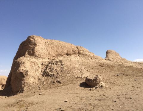 前面部份都有圍起来,只有小小標示,一直進去才能看到遗址,如今更加荒凉了,城中全無綠地,只有满地羊糞