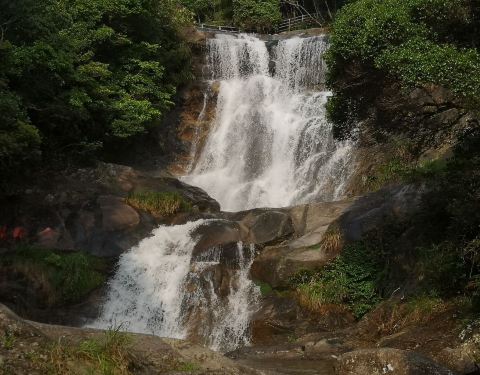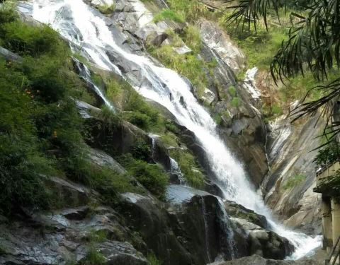 非常的凉爽,是个避暑圣地,山下到山顶都是瀑布