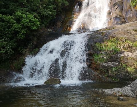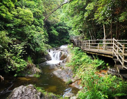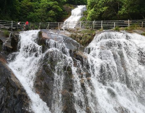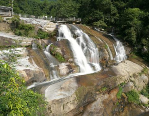 整个景区空气没有污染,略带水气,洗肺;瀑布水量还比较大梁野山是武平人值得骄傲的资源,其实也不过如此,顺棧道走上去不算太界,一层一层看瀑布。瀑布水量还比较大。整个景区空气没有污染,略带水气,洗肺;步行棧道均用木料铺就,不伤膝关节,很舒服,值得点赞!