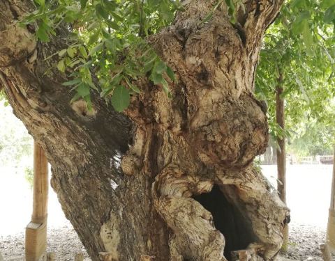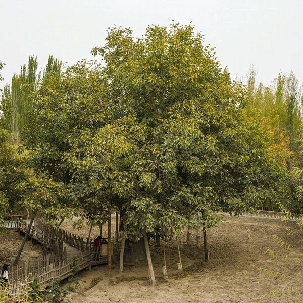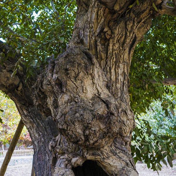 细看去,酷似一对情深意浓的人间母子,令游人感慨万分。字型,只是树干无其母粗实,介也得两人才能合围核桃王树耸立于喀拉瓦其村内,距新疆和田市区17公里。经考证,该树已有560多年历史,当属元代的果树,堪称老寿星。 历经数百年风雨沧桑,核桃王仍以其高大伟岸,枝繁叶茂,苍劲挺拔,树型大致呈"Y"字型,整个大树...核桃王树耸立于喀拉瓦其村内,距新疆和田市区17公里。经考证,该树已有560多年历史,当属元代的果树,堪称老寿星。 历经数百年风雨沧桑,核桃王仍以其高大伟岸,枝繁叶茂,苍劲挺拔,树型大致呈"Y"字型,整个大树主干五人合抱围而有余。由于年代久远,主树干中间已空,形成一个上下连通的"仙人洞",洞底可容纳四人站立。入口直径0.74米,出口直径0.55米,可容游人从洞口进入。离树王12米处其根又长出一棵核桃树,形状酷似老树王,身躯也呈"Y"字型,只是树干无其母粗实,介也得两人才能合围。细看去,酷似一对情深意浓的人间母子,令游人感慨万分。尽管核桃王如此古老,却叶肥果盛,据说年产核桃6000余颗。 展开