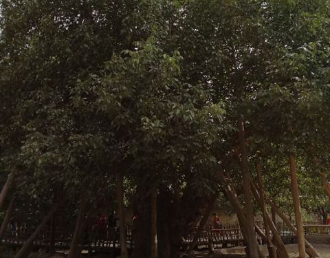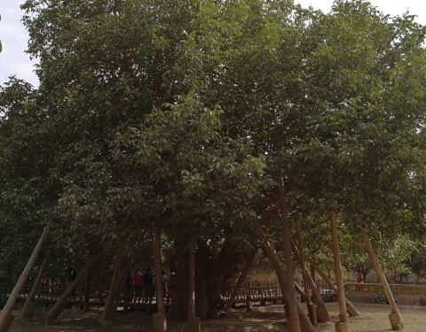 ...经沧桑,明显已经暮年,四周全部有支架,树干部分也有铁丝缠绕防止劈裂,不知道这颗古树还有多少时间