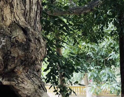 入口直径0.74米,出口直径0.55米,可容游人从洞口进入,顺着主杆从树丫上端出口处爬出核桃王树耸立于喀拉瓦其村内,距新疆和田市区17公里。经考证,该树已有560多年历史,当属元代的果树,堪称老寿星。该树独占一亩天地,树高16.7米,树冠直径20.6米,主干周长6.6米,冠幅东西长21.5米,南北宽10.7米,...核桃王树耸立于喀拉瓦其村内,距新疆和田市区17公里。经考证,该树已有560多年历史,当属元代的果树,堪称老寿星。该树独占一亩天地,树高16.7米,树冠直径20.6米,主干周长6.6米,冠幅东西长21.5米,南北宽10.7米,树型大致呈"Y"字型,整个大树主干五人合抱围而有余。由于年代久远,主树干中间已空,形成一个上下连通的"仙人洞",洞底可容纳四人站立。入口直径0.74米,出口直径0.55米,可容游人从洞口进入,顺着主杆从树丫上端出口处爬出。细看树干皮色,粗糙而深沉,恢宏而古老,像画家笔下凝重苍劲的色彩,形状奇特,气势雄伟。葡萄架通道核桃园里买了一些纸皮核桃,36元/公斤。 展开