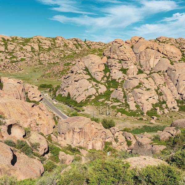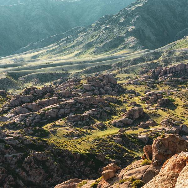 怪石峪是个在中哈边境钱上的风景区。一条笔直的公路一直来到怪石峪,公路两旁是高大的山峦,青青草原随处是羊群。当我们进入了景区大门之后,风景开始变得不太一样。黄色的花岗岩石从绿色的高山草甸中渐渐显现。...