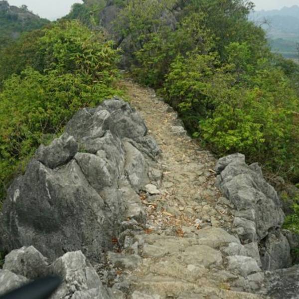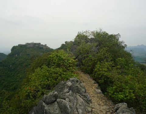 今年五一假期,从德天瀑布景区驾车,经龙硕-明仕田园这条中部路线到的龙州。 从县城开车去景点几公里。去时景点大门紧闭,一问才知维修,后问一大姐,热心告知有一后门。于是弃车步行,同行几个女将叫苦连天,没办法只得只身一人前去探路。估计一公里多点,即问到后门。 对比起来,没维修处的景点,远好看过大门上去维修过的景点,原汁原味,从后门一路上去,可到最高点兵房、炮台,可俯视左江,龙州县城及远处的开阔红土地,让风景更是迷人。 未开发的路线,个别地方有点陡峭,但都不构成威胁。 如开发完成,停车估计是个问题。