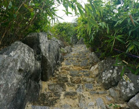 全是楼梯,上山较陡,走到山顶可以看见龙州县城全景